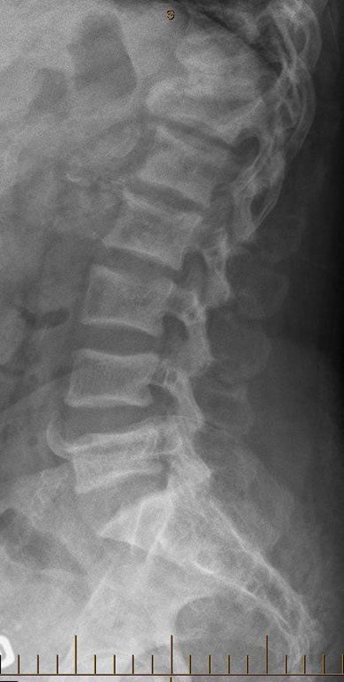 Figure 4: Radiograph of the patient’s spine, showing a rugger jersey spine