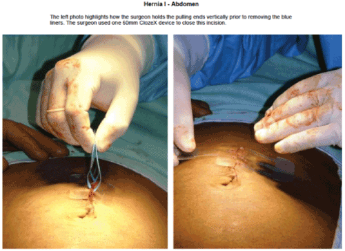 ClozeX® is an FDA approved medical device with well-established effectiveness in over 10,000 surgical procedures [19]. This new technology utilizes an interlaced design to rapidly apply tension along incision lines and secure wound closure. In practice, this technique provides shorter closure times and improved or similar outcomes to closure by conventional means.