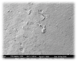 SEM analysis was done after the cell seeding on zirconia discs to evaluate adhesion of osteoblastic cells and colony formation and it was compared between the groups.