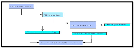 Figure 4. Retina image processing framework for cup-to-disc ratio (CDR) detection in glaucoma analysis.