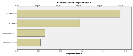 The proposed methodology implemented here is based on the concept of applying Feature Selection from the edge detection Dataset results (Output) and then classifying normal eyes and abnormal eyes (Glaucomatous subjects) based on enhanced decision (CDRV ≤ or ≥ 0.5).