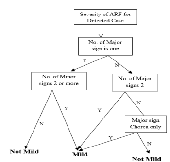A supervised learning technique automatically produces rules for ARF to classify outputs of Detected, Suspected or not Detected, based on patients screening symptoms (Table 1). A learning technique also generates the auto rule for identify various stages of ARF in the form of Severe, Moderate and Mild based on the screening symptoms (Table 1) and ARF knowledge-based.
