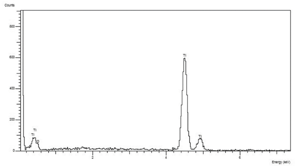 Figure 4. EDX analysis that showed the only presence of Titanium and Oxygen