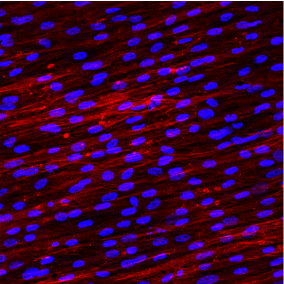 Figure 6. Confocal microscopy image of DPSCs grown on two Laser-Lock disks