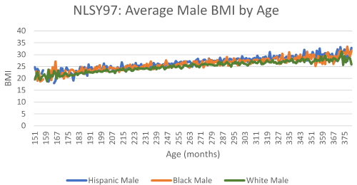 Results: Results suggest that race/ethnicity and age are highly correlated with BMI. Maternal and respondent are directly, but not proportionally related. The impact of non-biological mothers is much smaller than that biological mothers particularly at older ages. BMI trajectories reveal distinctly different growth for males and females and their maternal relationship.