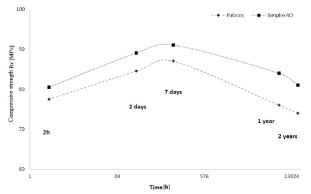 Figure 1. Strength alterations determined in the static compression test, dependent on the “age” of the bone cement [based on: [3]