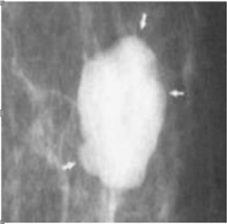 - Distortion of the mammary pattern or architectural distortion.