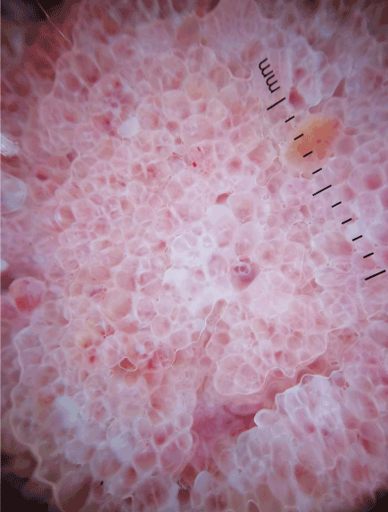 Figure 3. Dermoscopic image showing multiple yellowish and translucent lacunas separated by pale septa