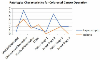 The oncologic qualities of the colorectal undertakings performed for tumour resection were moreover noted (Figure 3). There was no tremendous difference in tumor sort out or histologic assessment between the 2 social occasions [1,10,11,22,23,26]. Furthermore, there were no basic differentiation in the amount of lymph centre points harvested between the laparoscopic gathering and the robotic surgery. No resections performed for damage yielded positive edges in either assembling.