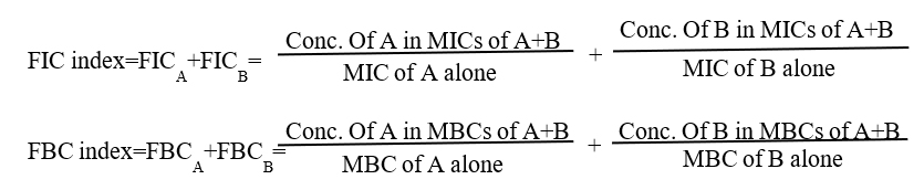2The fractional inhibitory concentration (FIC) index/fractional bactericical concentration (FBC) index