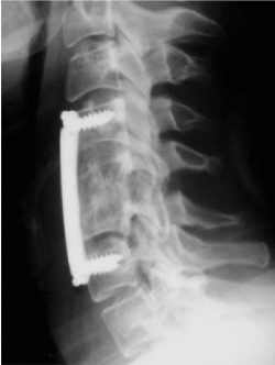 A 24-year-old man was referred to our center for evaluation of possible baroreflex failure. Her chief symptom was volatile HT and HR. Six months before admission, the patient experienced a neck trauma during a football playing accident which resulted in severe trauma to the cervical spine C5 (Figure 1). He Undergoes surgical reparation of his cervical spinal (Osteosynthesis C4-C6 with implantation of iliac graft) (Figure 2).