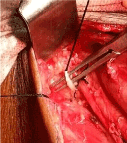 Figure 3. Intraoperative picture showing the ligation of chyle duct during left side neck dissection