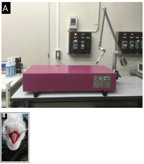 Laser-induced bone therapy has been introduced as a method to promote neo-osteogenesis [11]. Clinical applications of laser irradiation fall into one of two categories: low-reactive level laser therapy (LLLT), which seeks to promote biological activity, and high-level laser therapy (HLLT), which is aimed at destroying living tissues. Some authors have reported that LLLT promotes bone regeneration in bone defects via activating processes at the cellular level [12-14]. HLLT has also been reported to promote bone healing without invasive [11,15,16]. However, HLLT produces a photobiodestructive reaction (PDR), i.e., thermal destruction of cells, and some reports are negative towards the use of HLLT on bone.