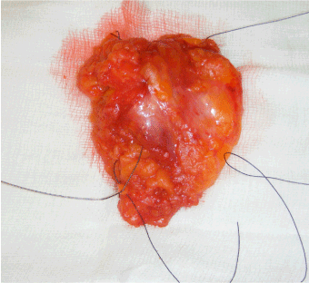 Figure 1. Breast Specimen orientated with sutures.