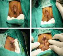 Case 1: A 8-month-old female patient weight 6 kg presented in opd with single opening in vestibule (no separate urethral and vaginal opening) (Figures 1-5).