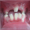 Intra-oral examination (Figure 4) revealed mixed dentition in her oral cavity. Teeth were