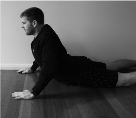 On follow up two days later, Kate reported improved comfort at work (sitting tolerance 45 minutes). Treatment of central mobilisation of L4 significantly improved lumbar flexion, reassessment showing cessation of Pa. Mobilisation of L5 and repeated extension in laying (REIL) improved Pb in flexion and PSLR. These techniques were chosen as physical examination identified extension as easing Kate’s symptoms, each technique used to introduce relative extension to the area. Grade three mobilisations were used as the limiting factor at both levels was resistance and higher grades may have aggravated her symptoms having no prior history of her response to manual therapy. Kate was given repeated extension in laying (Figure 3) for home exercise, as it led to in session improvement. Session 2 treatment is shown in Table 4.