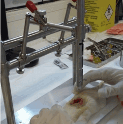 Figure 1. Induction of SCI between T9-T10, by direct trauma, with the use of the mini guillotine.