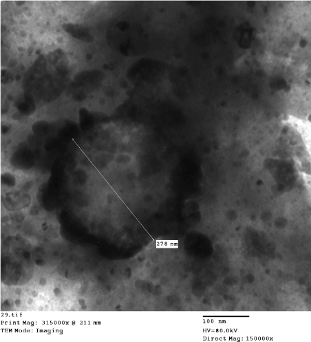 Figure 8. Human LSDV infections, skin lesion specimen showing; virions are brick-shaped, mature and enveloped [167nm-344 nm], pleomorphic with smooth envelope (Negative Staining, TEM).