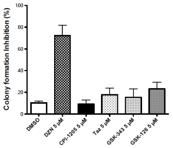 Inhibition of colony formation of HL-60 leukemic cells by DZNep, CPI-1205, tazemetostat, GSK343, or GSK126