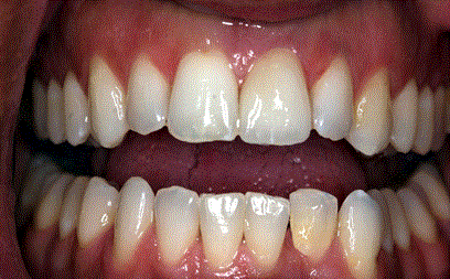 Figure 1. Midline diastema and mild fluorosis stains are visible.