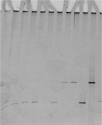 Mycoplasma DNA was successfully amplified for DGGE, performed using the DCode™ Universal Mutation System (Biorad). Samples (20 ul) were loaded on to 10% polyacyrlamide/bis (30:1) gels with denaturing gradients from 30 to 60%, in 1 × TAE electrophoresis buffer (Severn Biotech). Electrophoresis was performed at 100V at a temperature of 60°C for 18-20 h. Gels were then stained with SBYR Gold (Cambridge BioScience,) in 1 × TAE for 30 min at room temperature and visualized under UV illumination.