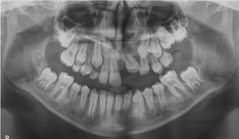 Figure 15 Case 4. After nine months the involved teeth were erupted