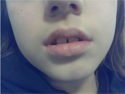 Besides genetic backround, deleterious habits such as duration of breastfeeding, bottle feeding, finger sucking or an object should be noted. Parents would also guide us regarding breathing from nose or mouth, impaired nasal breathing, otorhinolarengeal health issues, allergies, asthma, upper respiratory system dieseas and atypical swallowing. It must be noted that these clinical parameters are considered to be important factors in the aetiology of malocclusion [1-3]. Sometimes parents inform us regarding child’s doctor and medicaments, if (s)he drools on a pillow at night, sucks finger, pacifier or an object, breaths from mouth while sleeping or watching TV. However it should be noted that parents may not observe this pathological condition as they are used it to for a long time. Nor one of the parents is also has the same facial appearence as they feel its something related to proud, luck or feel of being familiar. At this point Proffit et al. [4] states the importance of genetic compound on facial features such as the tilt of the nose, the shape of the jaw, the formation of the lips, and the look of the smile. The authors also added that certain types of malocclusions also run in families. The classic ‘’adenoid facies’’ characterized by narrow width dimension, protruding teeth and lips seperated at rest, has often been attributed to mouth breathing. Within exceptions of exercise, and physiologic mouth breathing, obstructed nose breathing is hard and this resistance ton asal breathing switches the child to partial mouth breathing. This kind of long duration respiration may guide the child to posture and soft tissue change. Tourne and Schweiger [5] stated that nasal obstruction guides humans to 5 degrees change in craniovertebral angle. By this way jaws move a part, as much by elevation of the maxilla and depression of the mandible [4]. Most of these children has long buccal corridors, short philtrum, and stiff musculature of orbicularis oris. (Figure 1) However in some cases this pathological extraoral view may not guarantee a malocclusion while soft tissue may hide malocclusions in many cases. In a recent clinical study children who were mouth breathers demonstrated considerable backward and downward rotation of the mandible, increased overjet, increase in the mandible plane angle, a higher palatal plane, and narrowing of both upper and lower arches at the level of canines and first molars compared to the nasal breathers group. The prevalence of a posterior cross bite was significantly more frequent in the mouth breathers group than nose breathers Abnormal lip-to-tongue anterior oral seal was significantly more frequent in the mouth breathers group than in the nose breathers group [6]. Vice versa Cazzolla et al. [7] stated that habitual snoring and obstructive sleep apnoea syndrome (OSAS) are significant problems for children and may be associated with diurnal symptoms. The authors also concluded that the presence of malocclusion increases the likelihood of sleep-related breathing disturbances such as obstructive sleep apnoea syndrome. Apnoea is a breathing disorder with the absence of airflow at the nose or mouth where children may present adenotonsillar hypertrophy, neuromuscular disorders and craniofacial anomalies. The most common treatment for in childhood is adenotonsillectomy. Therefore, in cases of related dentofacial corrrections, it is also obvious to send the child patient to a otorhinolarengioist for a consultation. However it should be noted that most of these cases would be followed or operated regarding otorhinolarengeal pathologies while the lazziness of these musculature and not having usage of nose guides the face into a very special dentofacial anomaly including a bruise like colour under eyes (Figure 2). A pediatric dentist may detect and note this kind of breathing mode through different ways.