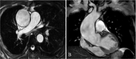 The patient underwent ECG- synchronized MRI examination of the aorta and heart. The study was performed on MRI 1.5T with a specialized cardiac coil [3].
