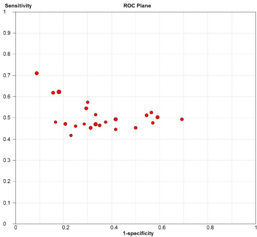 Table 3. Meta-regression analysis of potential moderators to explain heterogeneity of diagnostic value of transcranial sonography in PD