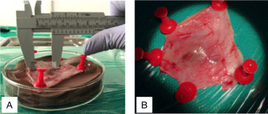 After removal of the subcutaneous tissue from the back, the tumor appearance was evaluated regarding invasion, necrosis and adherence, using a pachymeter to measure the main dimensions (Figure 6).