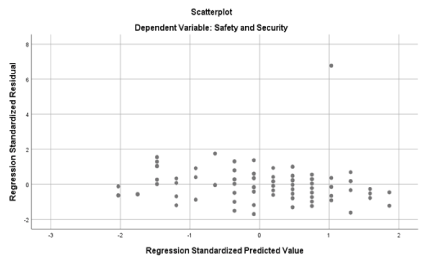 Table 3 indicates that increase in OHS is attributable to road maintenance. From the scatter plots, there exists just one outlier on each of the two models. The cloudiness of the dots in the plot indicates the presence of homoscedasticity, implying that the responses of the respondents all have same variance mean. There exist no wide variances in the responses.