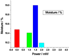 Figure 6. Variation of honey Moisture versus laser output irradiated powers