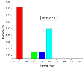 Figure 13. Variation of honey maltose versus laser output irradiated power