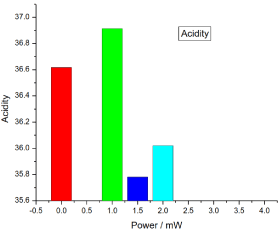 Figure 14. Variation of honey Acidity versus laser output irradiated powers