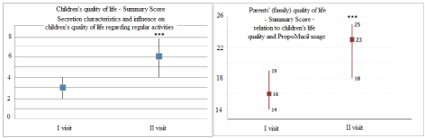 It was obvious that natural syrup supplementation and along with that children’s health status improvement lead to significant increase in children’s so as parent’s life-quality (P<0,001 for both) (Figure 4).
