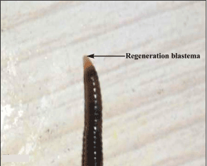 Earthworms (Annelida: Oligochaeta) are the first group of coelomates that exhibit variable degree of regeneration. The regeneration ability of 12 topsoil and 5 subsoil earthworm species have recently been studied [1] and it was concluded that the topsoil earthworm species, in contrast to subsoil species are subjected to predator attacks and agricultural practices and are equipped with the power of regeneration of lost body segments.