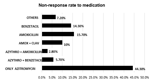 Graph 1. Rate of non-response to the antibiotic prescribed at the first consultation, making the patient return in order to change medication