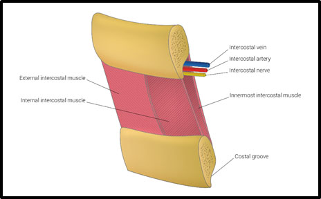 Regardless of needle site or length, the basic anatomy of the intercostal vessels is essential (Figure 5). These vessels and the intercostal nerve are generally protected by the inferior groove of each rib. The insertion of any intrathoracic needle should be placed just superior to lower rib defining the intercostal space of interest and directed perpendicularly. This minimizes the chance of injuring these intercostal structures.