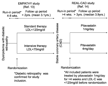 - Ueshima K, Itoh H, Kanazawa N, Komuro I, Nagai R, et al.(2016) Rationale and Design of the Standard Versus Intensive Statin Therapy for Hypercholesterolemic Patients with Diabetic Retinopathy (EMPATHY) Study: a Randomized Controlled Trial. J Atheroscler Thromb 23: 976-990. [Crossref]