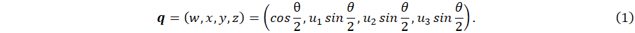 Quaternions are one way to parameterize a 3-dimensional rotation. It is closely related to the angle-axis representation. In effect, if we let u = (u1,u2,u3) and θ bex respectively (Figure 1A), we have the following relationship: