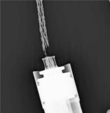 Figure 2. X-ray image of LVAD driveline revealing significant damage with only 1 of 6 wires intact