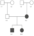 Figure 1. Genogram of the family. Square indicates male, circle indicates female and solid means affected.