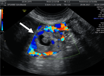 Figure 9. Fetal pole with visible fetal heartbeat detected at Power-Doppler.