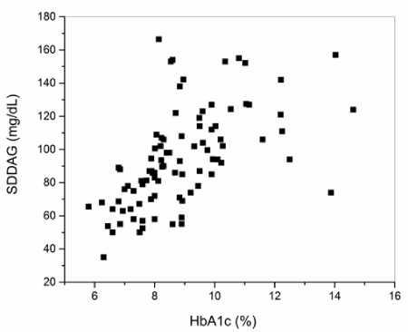 In addition, the positive correlation observed between SDDAG and HbA1c indicates that this GV marker can be used in the short term as a predictor of the glycated hemoglobin levels in order to allow directions and earlier adaptations in clinical management.