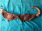 Figure 1. Myocardial band unfolded in all its extension. PA: Pulmonary artery; RS: Right segment; LS: Left segment; DS: Descending segment; AS: Ascending segment; A: Aorta (bovine heart)