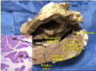 Figure 4. Longitudinal section of the left ventricle. It shows the descending segment adjacent to the ascending segment. The circle indicates the end of the ascending segment, which runs alone to attach to the cardiac fulcrum. This area is activated in the cardiac suction phase. The histology shows the different orientation of the longitudinal fibers of the ascending segment (AS) in relation to the transverse fibers of the descending segment (DS) (bovine heart)