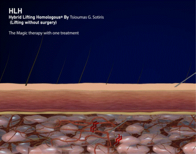 The term Homologous is used because a basic part of the method is the use of the autologous thread method. Based on SMAS's basic theory of tissue repositioning, Dr. Tsioumas G. Sotiris, using the Needle Shaping technique, recreates existing aged tissue and reposition it by altering the density and direction of the facial elastic fibers without intervene surgically. Autologous technique means, when taken by an organism and given to itself. In this method, the existing aging elastic fibers are obtained and new ones are given, which are regenerated by Needle Shaping technique. The new therapy HLH Therapy®, based on its plasma (PLEXR ®) and autologous techniques (NEEDLE SHAPING) simultaneously, can be applied without fear and without complications to people with autoimmune diseases, people with a history of cancer even in people with diabetes [3].