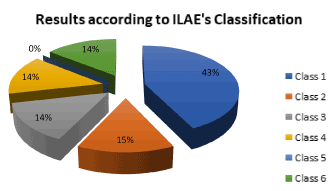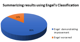 86% of the patients after surgery experienced improvement in the frequency of seizures (Engel I, II and III) from this proportion 42.85% were Engel I; only 14% of the patients worsened. (Engel IV).
