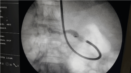 The patient was subjected to a repeat ERCP to exclude bleeding and duodenal injuries, and a 5F 10cm plastic stent was inserted to reduce the risk of post procedure pancreatitis. Her post procedure recovery was uneventful and was discharged on day two.